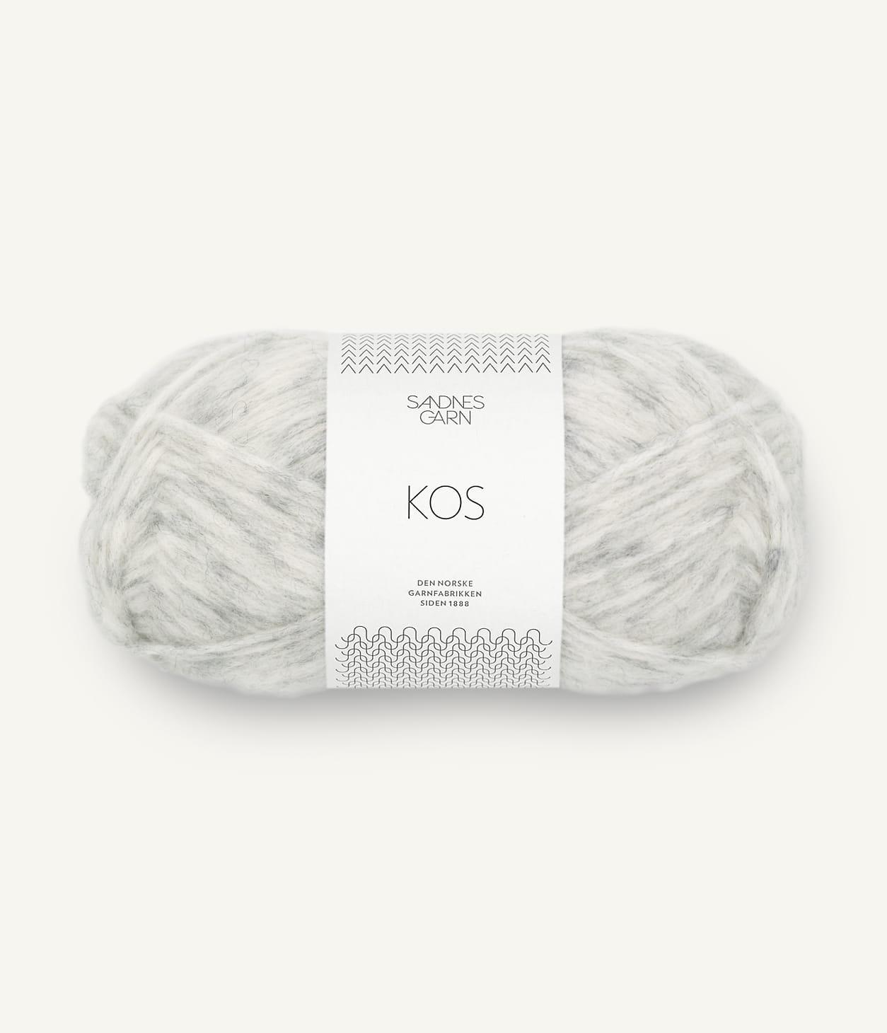 Kos består av alpakkafiber som sammen med ull blir blåst inn i en nylonstrømpe. Dette gir et mykt, lett og luftig garn.