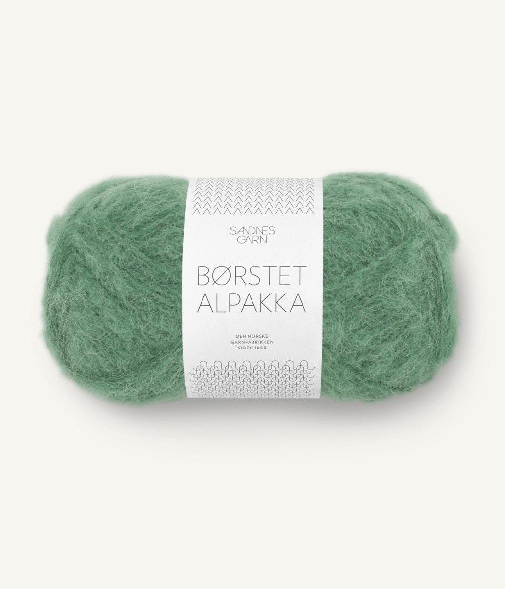 Børstet Alpakka består av alpakkafiber tvunnet sammen med en sterk nylontråd, som holder det hele sammen når alpakkafibrene blir børstet opp. Dette gir et mykt, lett og luftig garn med et loddent uttrykk.