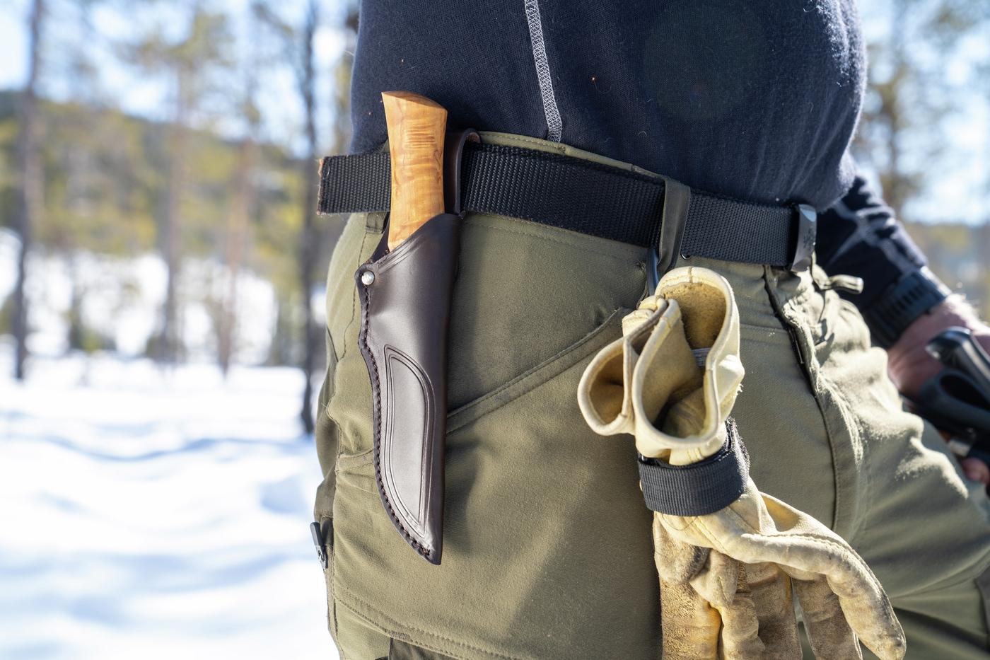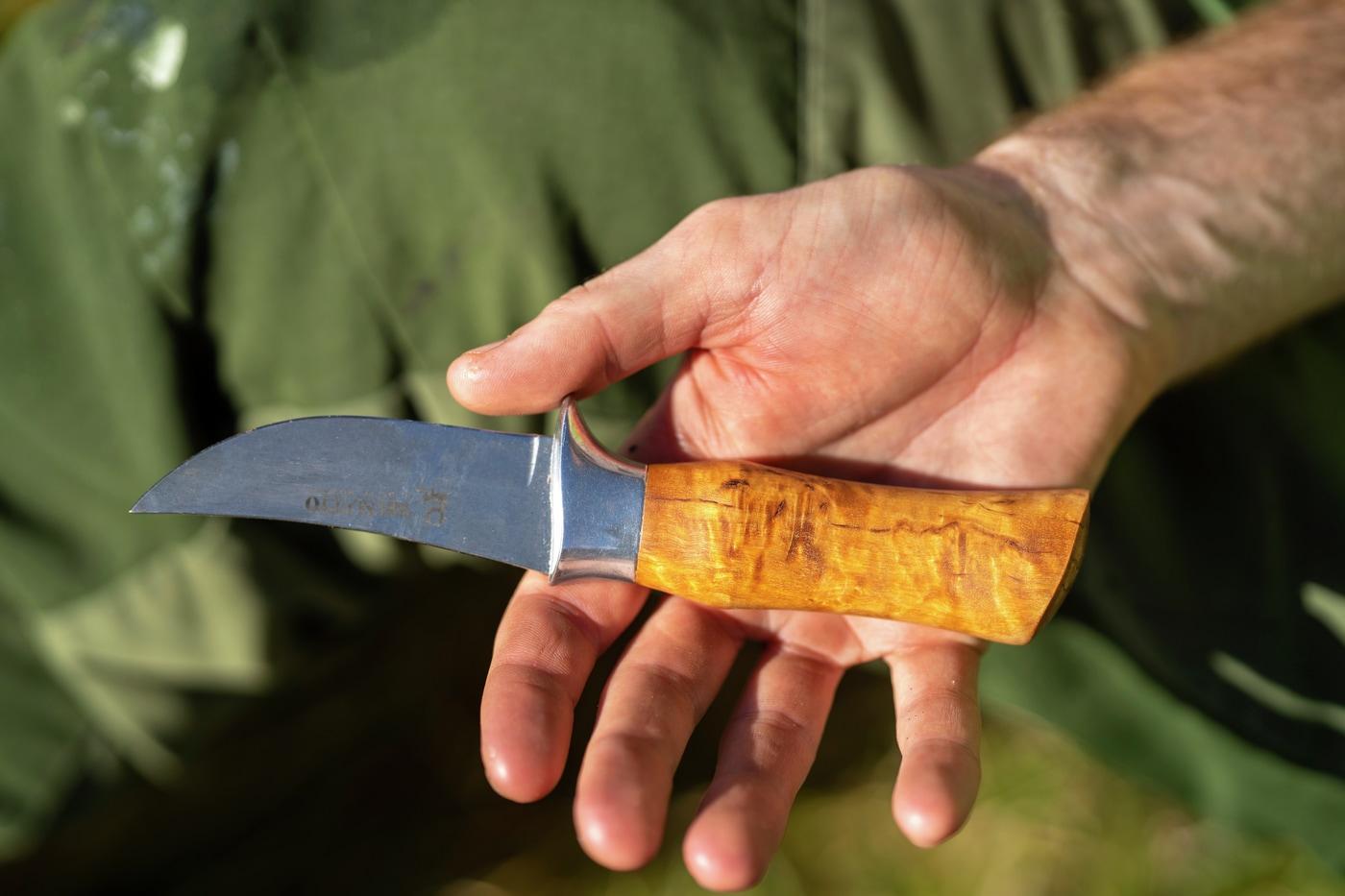 Dette en en svært god jaktkniv/ turkniv med hulslipt knivblad. Knivbladet har et buet oppsving (trailing-point) tilpasset til jakt, men som også er anvendelig til annet bruk. Siden knivbladet er hulslipt, er kniven perfekt til å skjære i kjøtt (mellom skinnet og kjøttet). Knivbladet er ikke for langt – som gjør at kniven er god å bruke. Kniven har støpt aluminiumshold med fingervern. Sandvik stål i knivbladet som er ekstra holdbart og oljet masurbjørk i skaftet. Kniven har en holk i støpt aluminium. Kniven leveres med lærslire og og en flott gave eske.