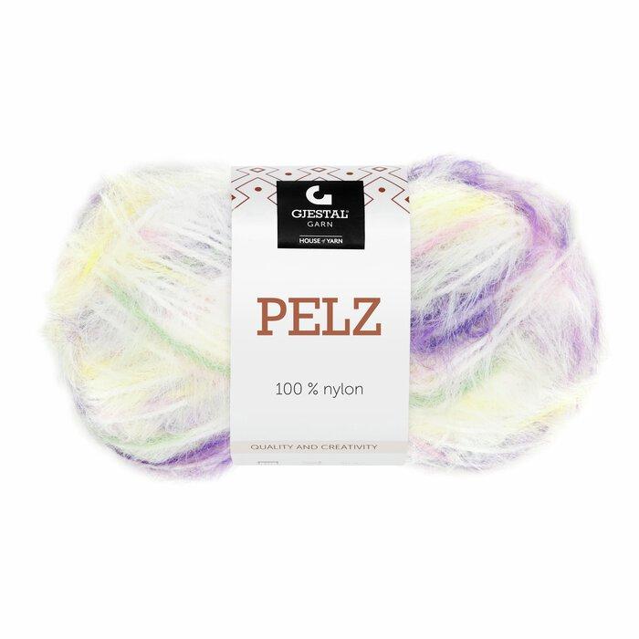 Pelz er et garn i 100 % nylon som har en fantastisk myk touch. Det er et luftig pelsgarn, med optimal strikkefølelse der maskene glir godt på pinnene. Foruten fine basisfarger, kommer Pelz både i tidsriktige solide farger og i print. Pelz gjør seg godt alene i hele plagg, som er føles deilige mot huden, og det passer også godt å kombinere med andre garn.