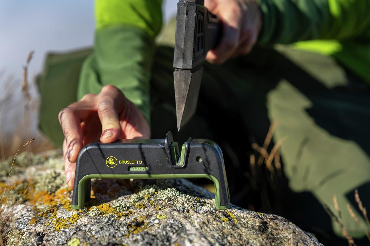 Praktisk, solid og kompakt sliper til øks og kniv. Flipp bryteren under for å velge om du skal slipe øks eller kniv.
