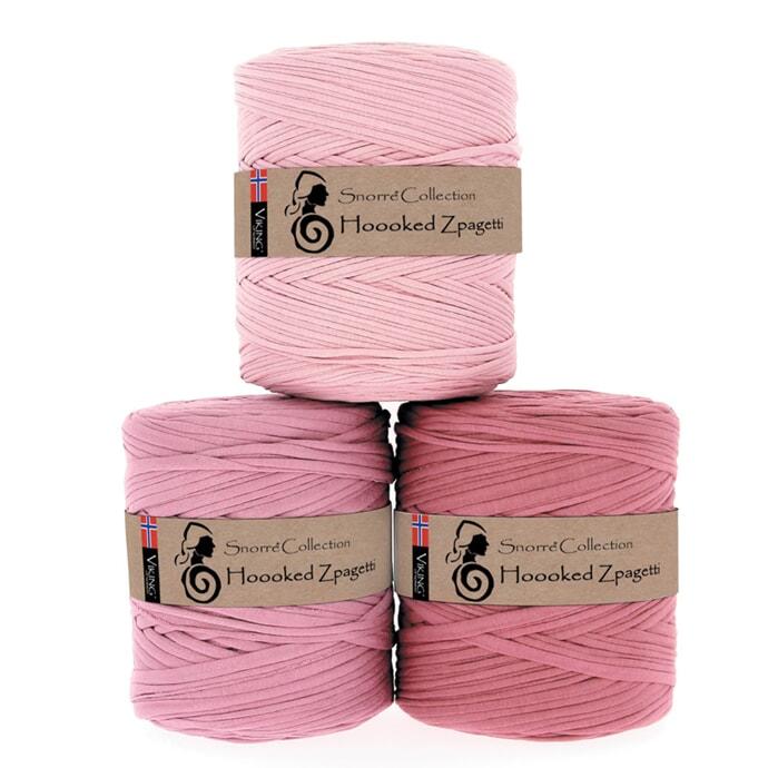 Zpagetti er det originale jersey t-skjortegarnet. Tekstilavfall fra europeiske motefabrikker kjøpes av Hoooked og velges ut,