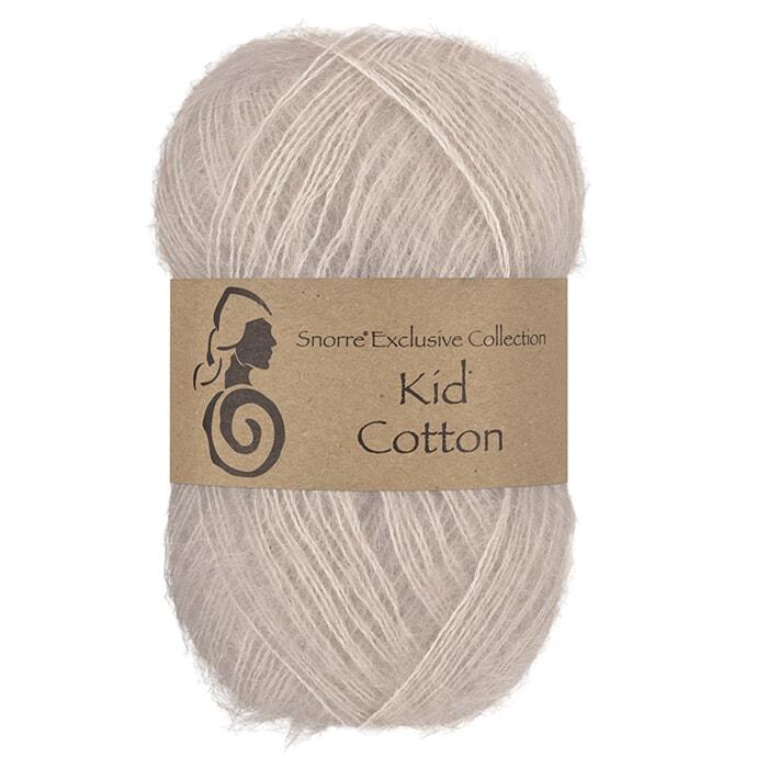 Kid Cotton består av 70 % kid mohair og 30 % bomull.